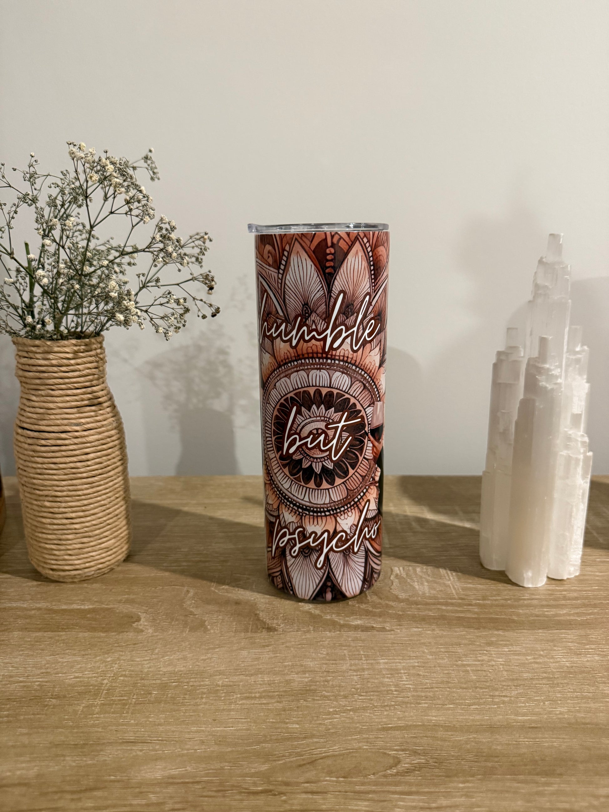 Sleek, stylish, and ready to sip! This 20oz double-wall insulated tumbler features a vibrant, full-colour sublimated design — no wraps or vinyl, just a smooth, permanent finish that won’t peel or fade. Pre-made and ready to ship, it’s the perfect everyday tumbler for hot coffee or iced drinks on the go.