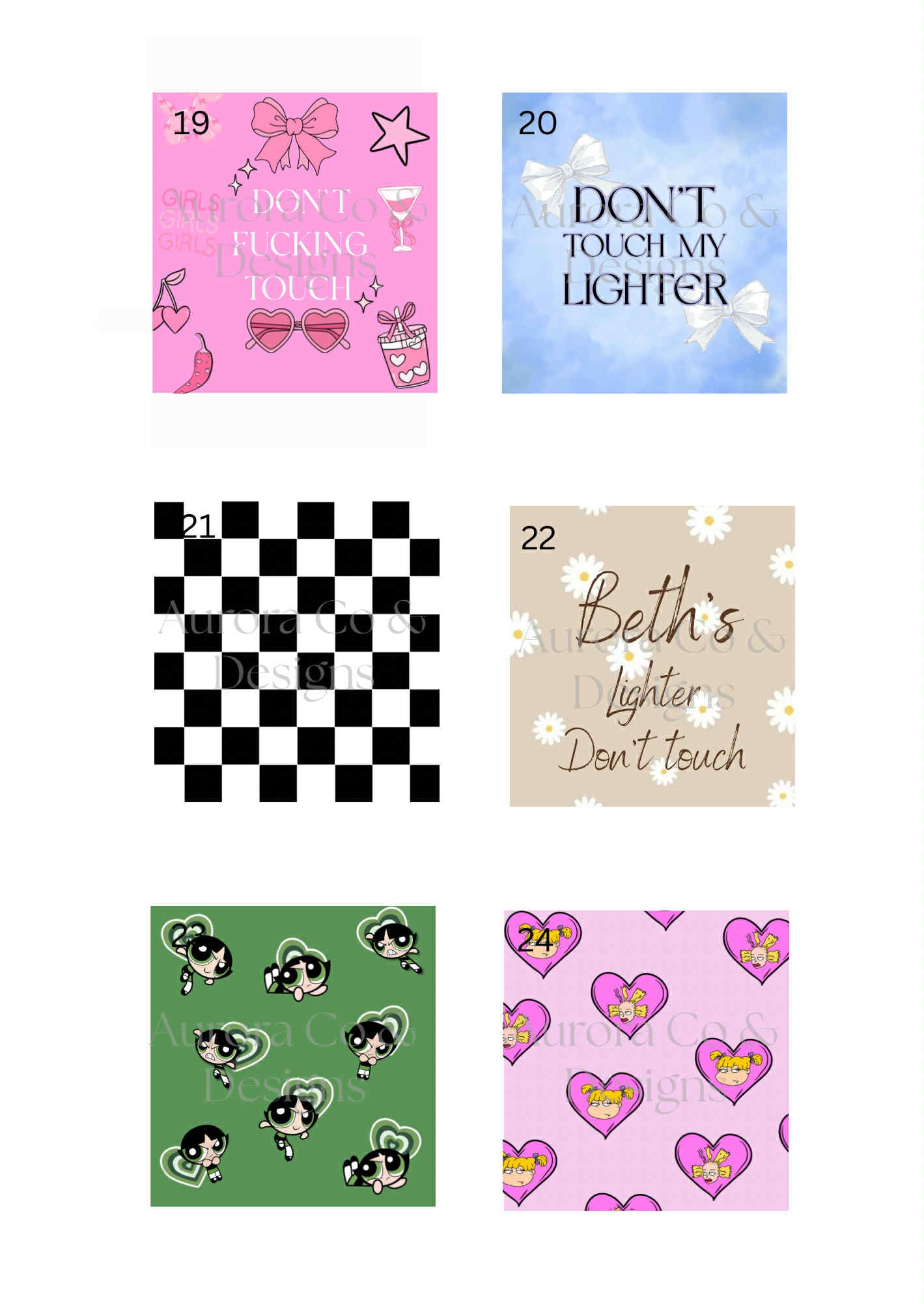 Light up your style with our custom BIC lighter stickers – the perfect way to add personality to your pocket! Whether you’re after bold graphics, your name, a business logo, or your favourite meme, we’ve got you covered. • Made to fit standard BIC lighters • Waterproof and durable vinyl • Easy to apply – no peeling or bubbling • Choose from pre-made designs or create your own • Great for personal use, gifts, or promotional items