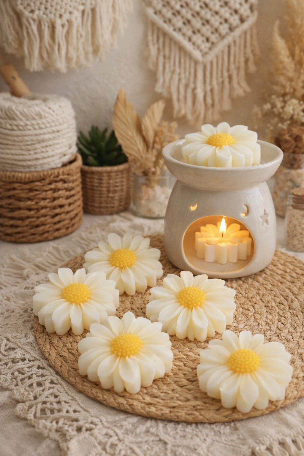 Indulge your senses with our Daisy Wax Melt 5 Pack in the irresistible Black Opium fragrance. Hand-poured with love, these delicate daisy-shaped melts are as beautiful as they are powerful, designed to elevate your space with both style and scent.