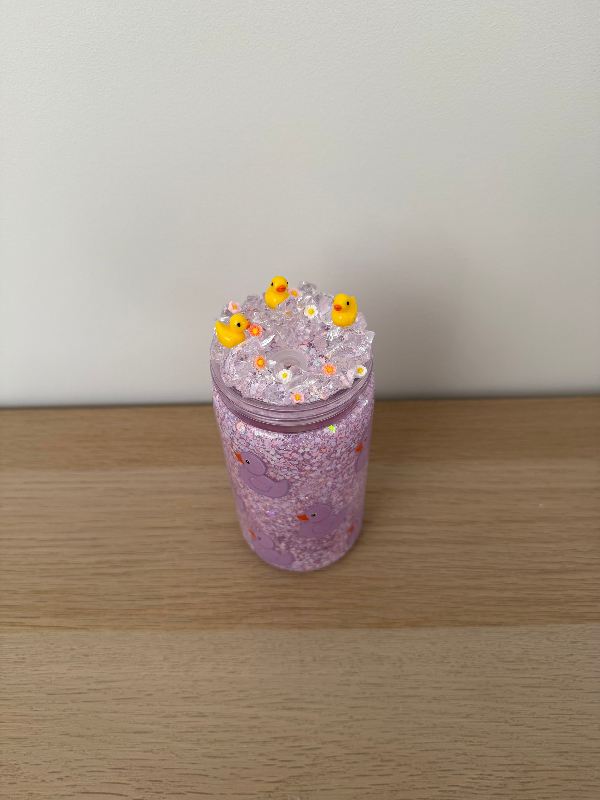 Turn every sip into bath-time fun with this adorable Rubber Duck Sparkle Cup! Decorated with shimmering glitter, pastel purple ducks, and topped with a lid that looks like bubbly bath foam - complete with tiny rubber ducks and daisies - this cup is the ultimate mix of whimsical and stylish.